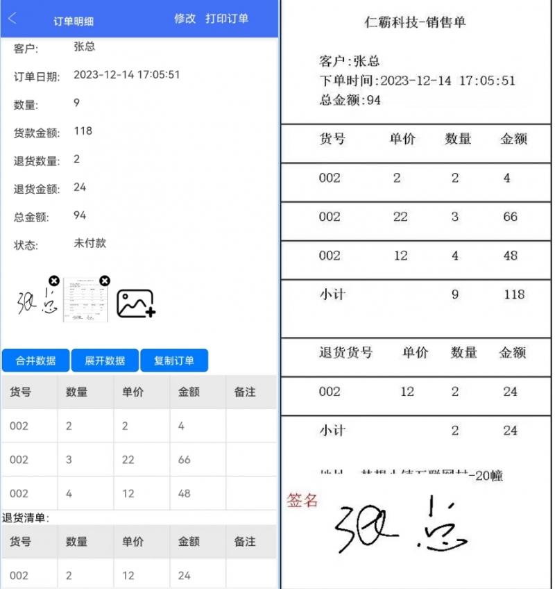 手機端開單-對賬